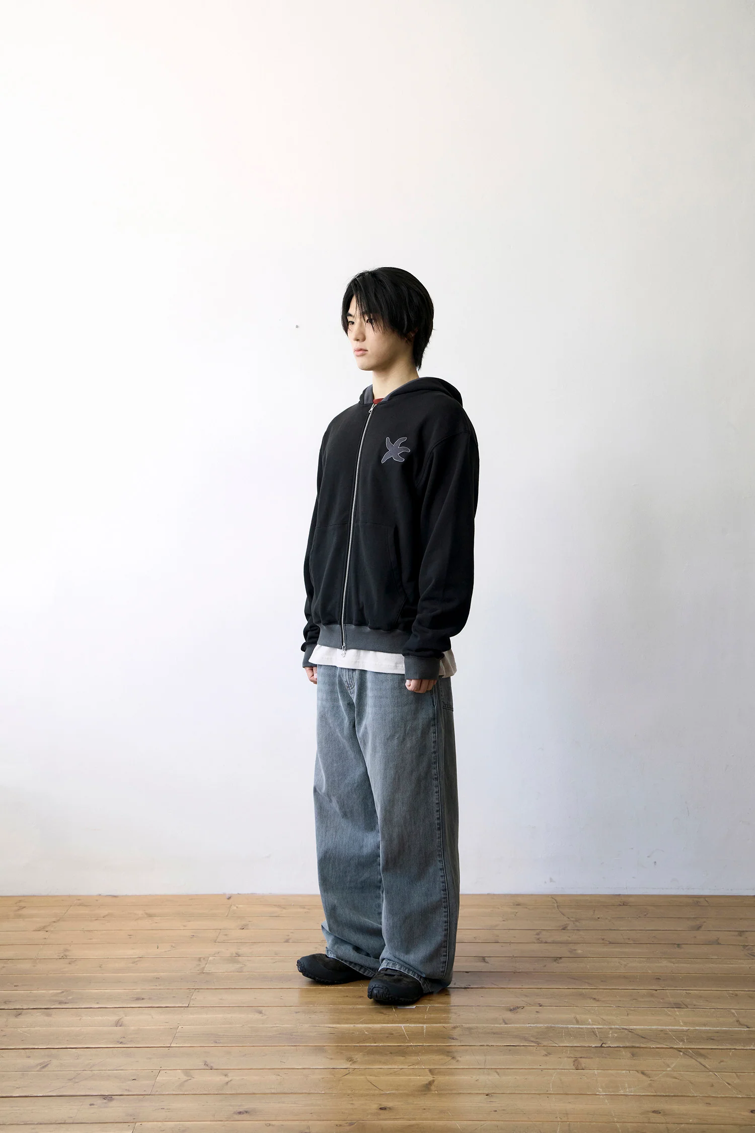 TCM line hooded zip-up (black)