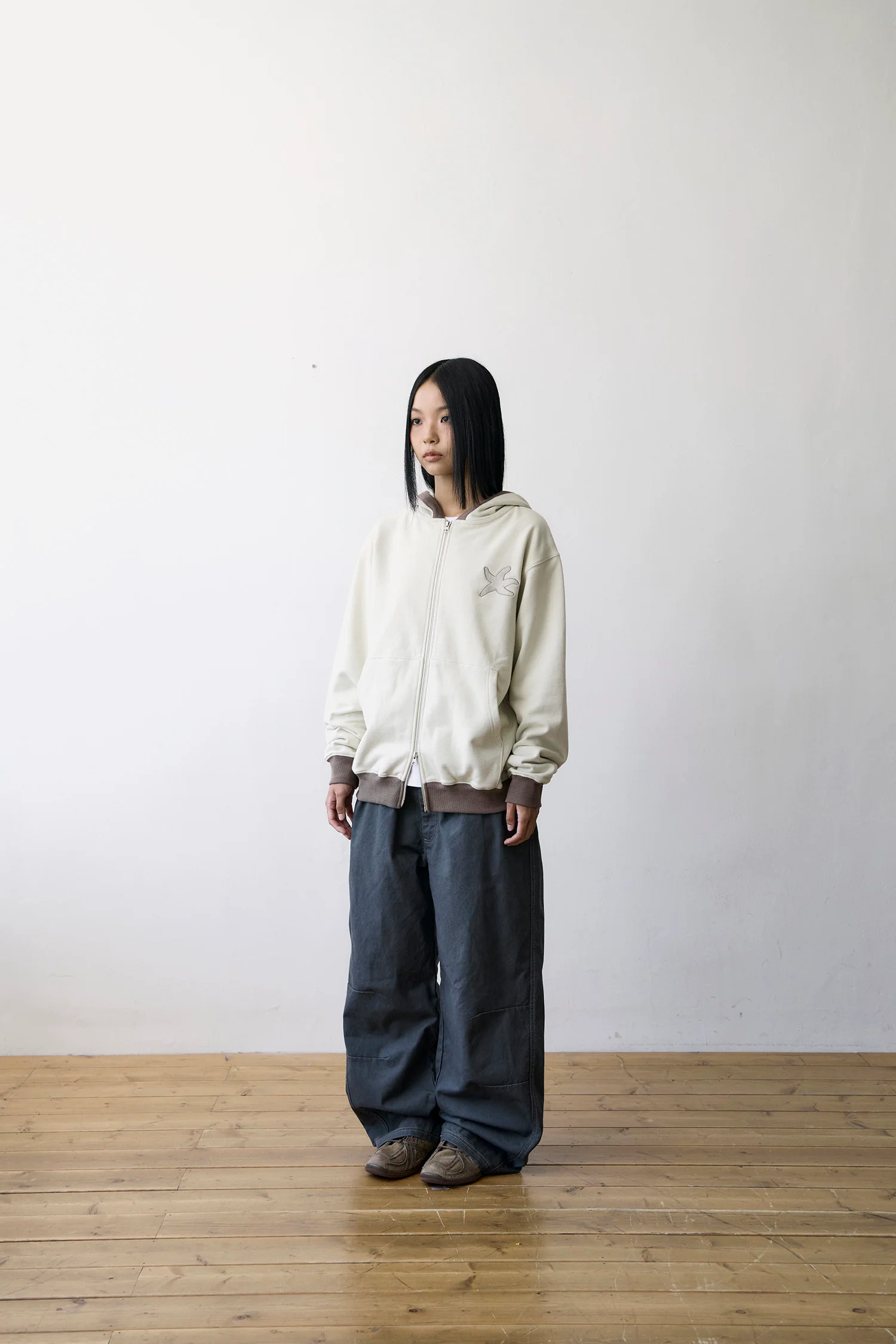 TCM line hooded zip-up (brown)